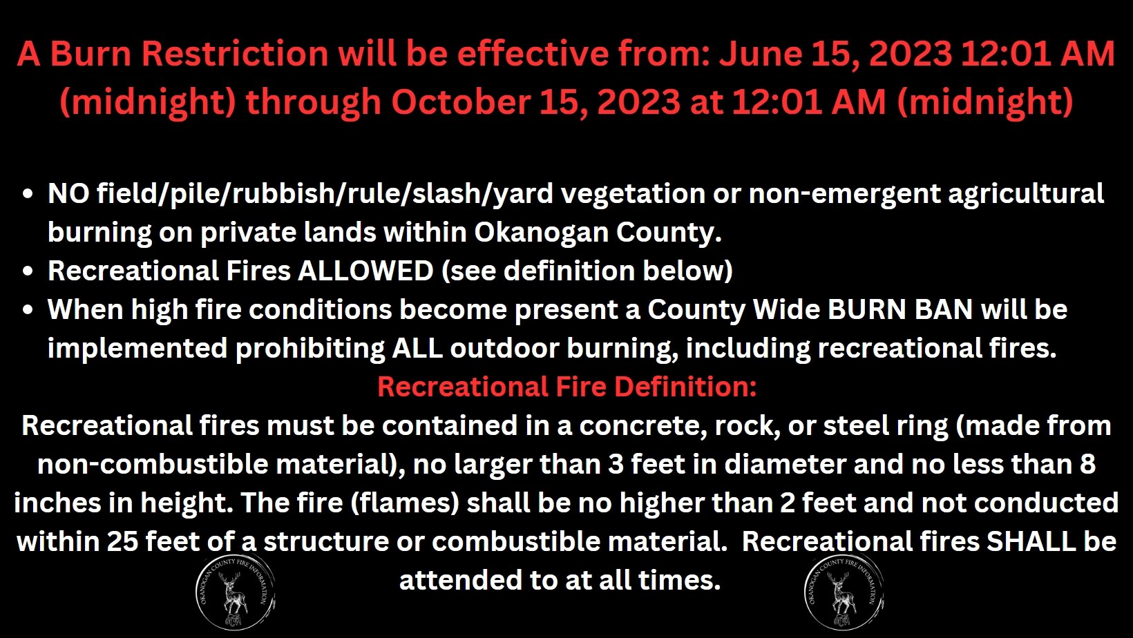 Okanogan County Burn Ban Starts TONIGHT!!! June 15, 2023 at 12:01am
