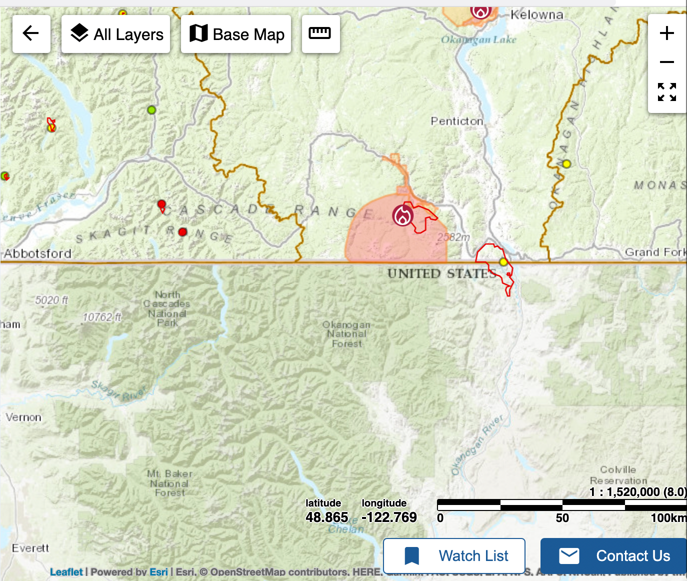Heat map this morning was showing the fire about 2 miles north of the US/BC border.