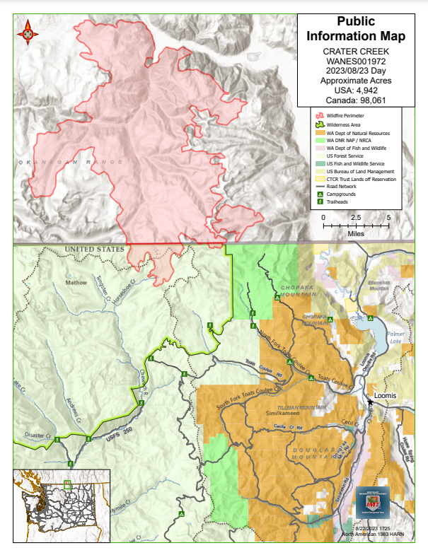 The Washington State Department of Natural Resources closed the northern block of the Loomis Natural Resources Conservation Area effective immediately as a Canadian wildfire approached the boarder.