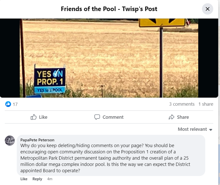 It's up to the voters now and it is up to us to make sure the correct info is out there. Remember, we are voting against a Metropolitan Park District first.