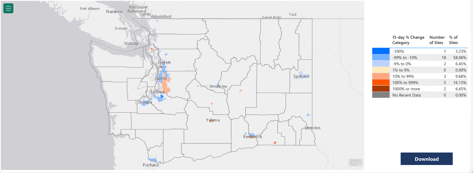 Especially helpful if you have a WebGL-enabled browser is the map showing changes in where COVID is detected in wastewater, e.g.: