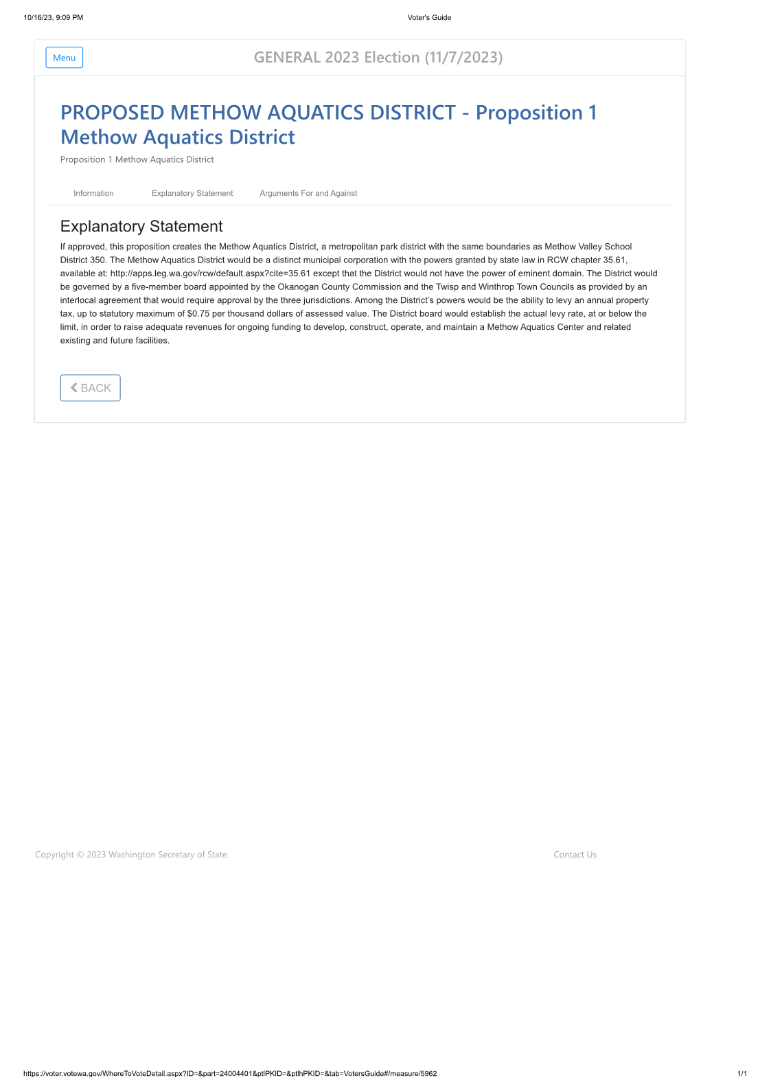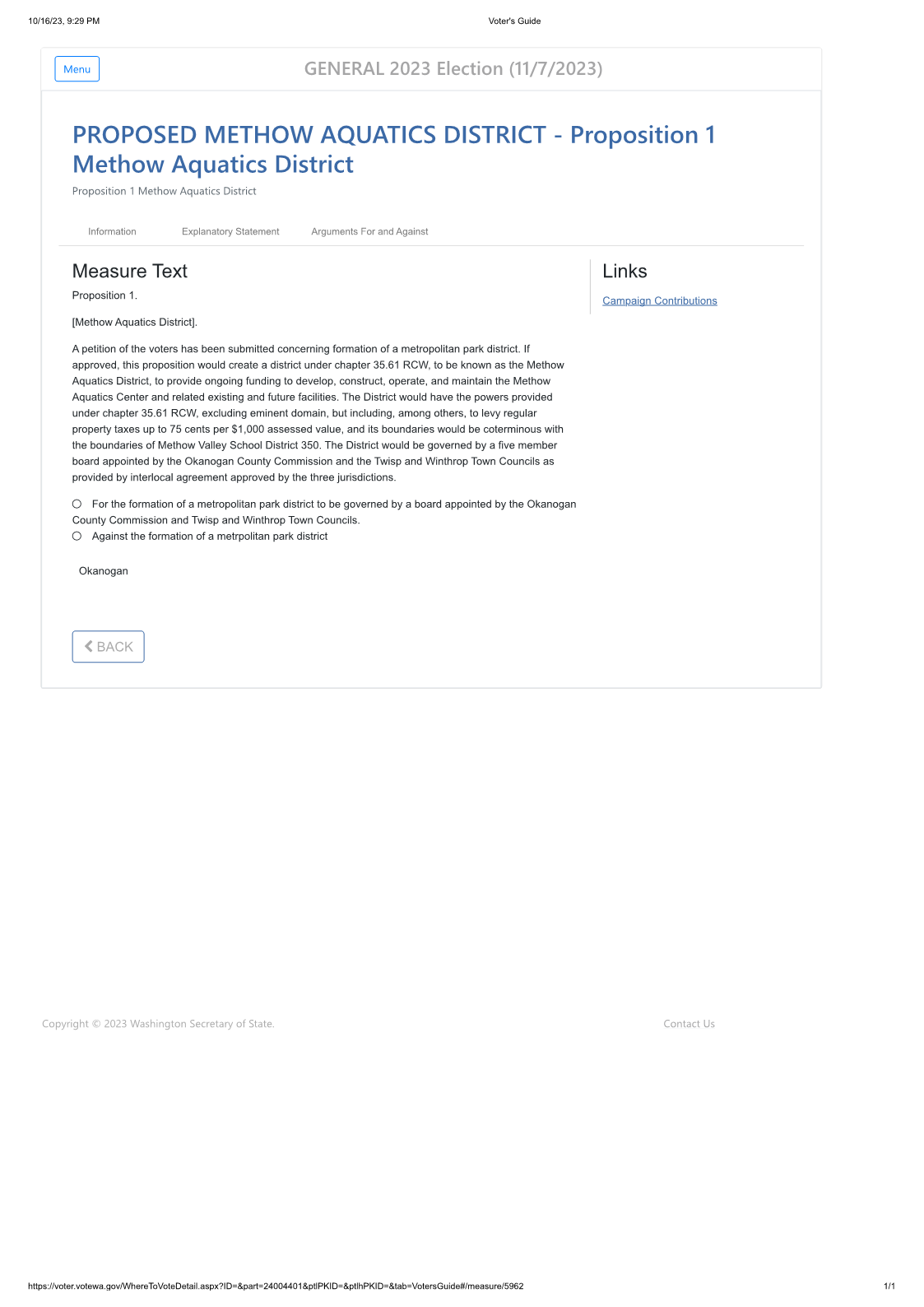 However, Wa State law states (RCW 35.61.100\ 35.61.110 ) "Every metropolitan park district may contract indebtedness not exceeding in amount, together with existing voter-approved indebtedness and nonvoter-approved indebtedness, equal to two and one-half percent of the value of the taxable property in said district, "