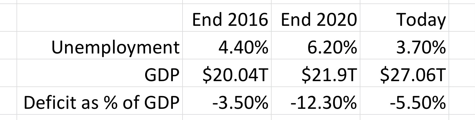 If you are really generous what you get from the Trump years is three years on approximately the same trajectory as the Obama administration and one year where it all went to hell. You don't need me to tell you which year.