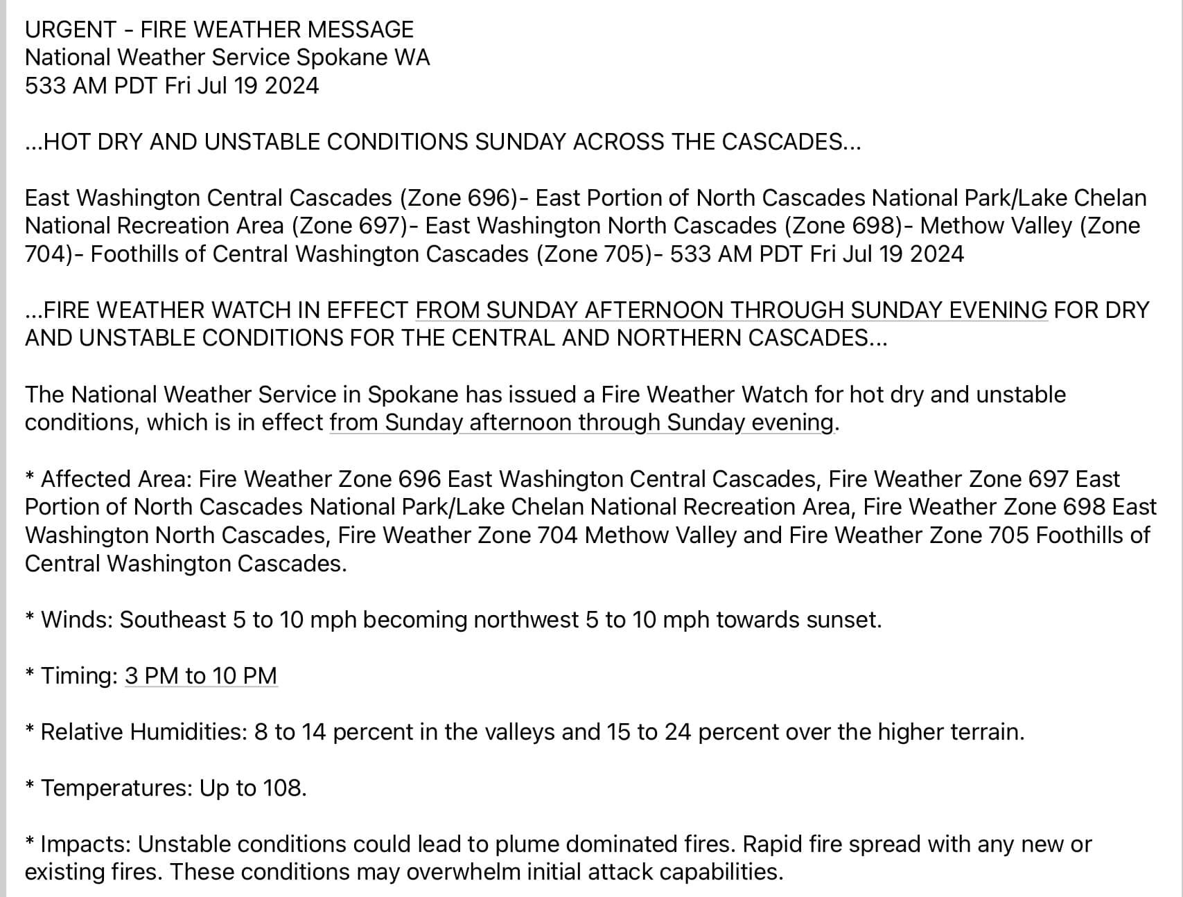 Can't see what they waited until the 20th, when I wasworking my claim on Blewett Pass they started a burn ban where you could not burn anything that left an ash even in a wood stove I had in my 14 x 16 tent June 1st, yes June 1st not july