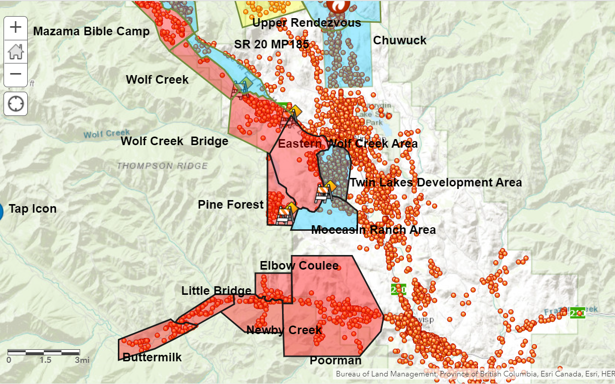 Level 3 issued for the Eastern Wolf Creek area. View MAP for area: OKANOGAN COUNTY ADVISORY MAP