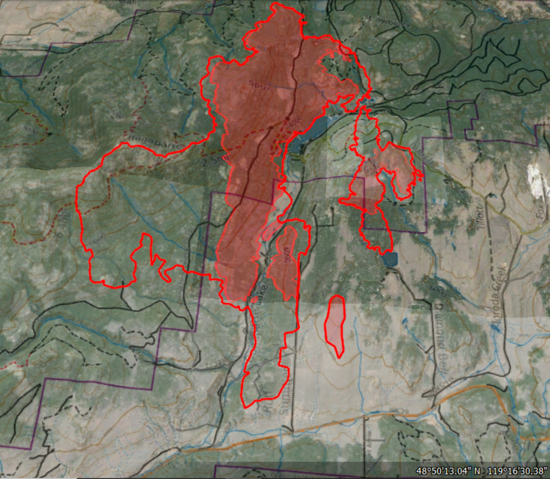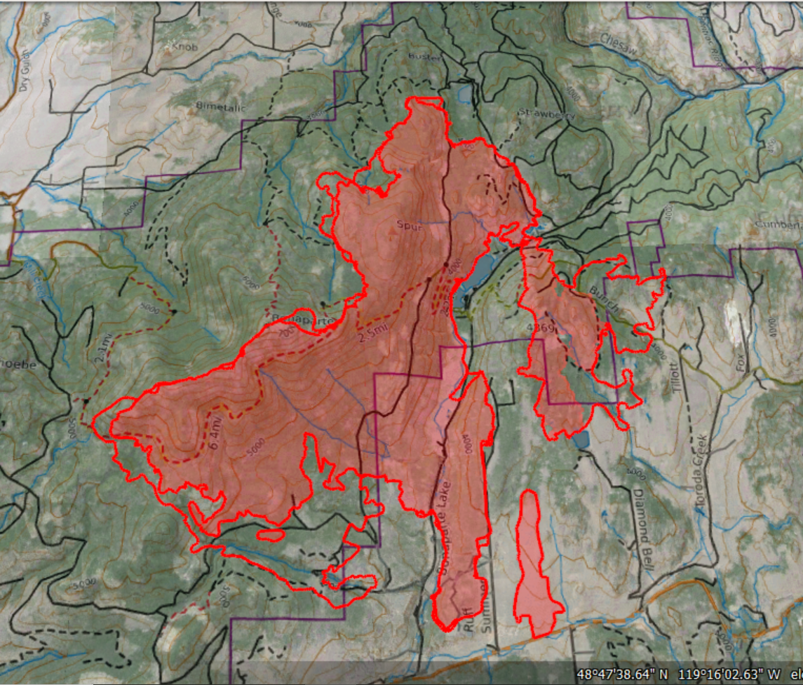 All current wildfires (larger filesize - 12.8 mb)... Previous perimeter files were selected for Methow Valley and small filesize