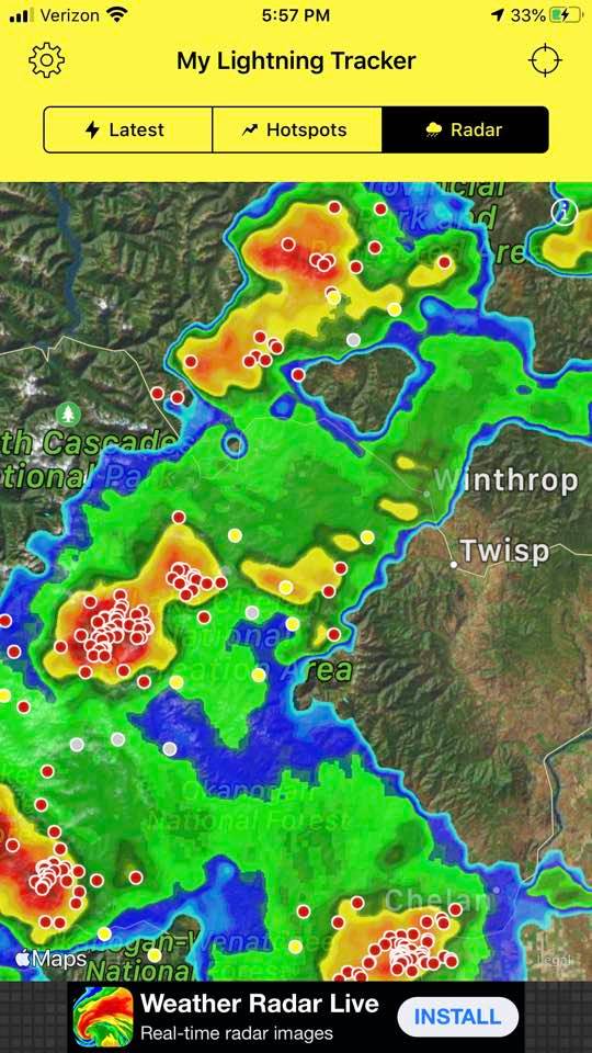 expected. Lightning yesterday afternoon and evening has