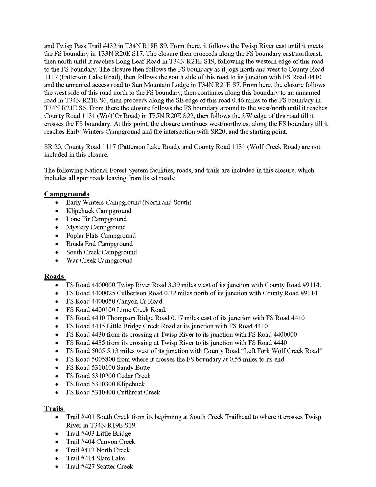 Here is the list of current area closures on the Okanogan-Wenatchee National Forest.