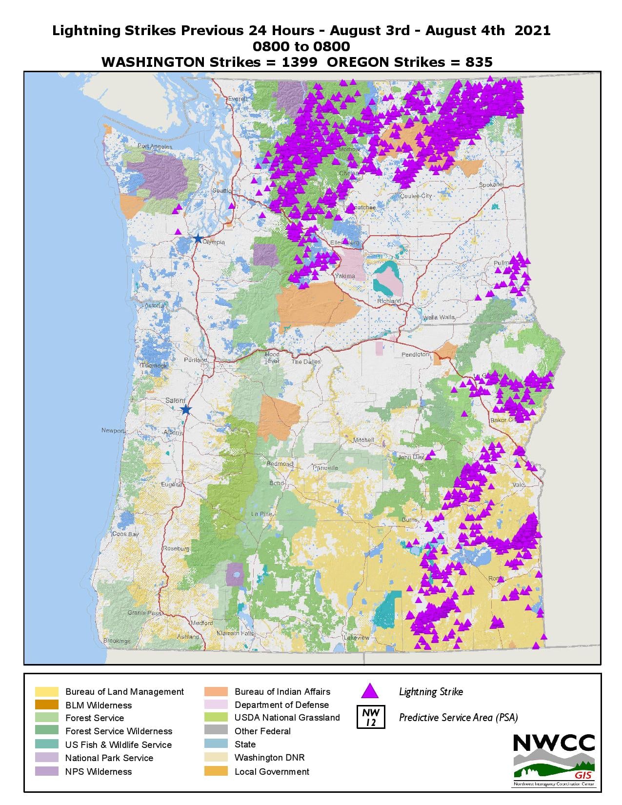 With significant cloud to ground lightning strikes recorded, there is a high probability of more new starts today and for the next several days.