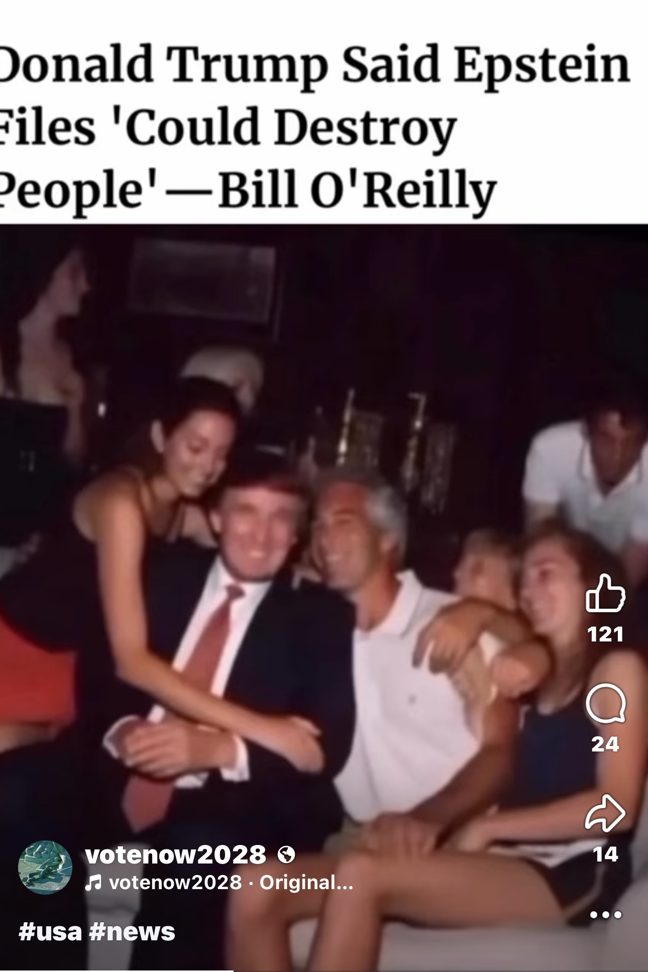And aren't you LISTENING to your boy Donald? He says the Epstein Files DO exist, but that Hillary WROTE them. Of course, that begs the question, WHY would she put her husband Bill in it, if she WROTE it?