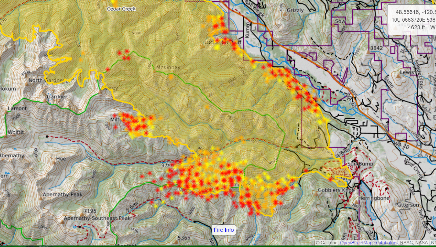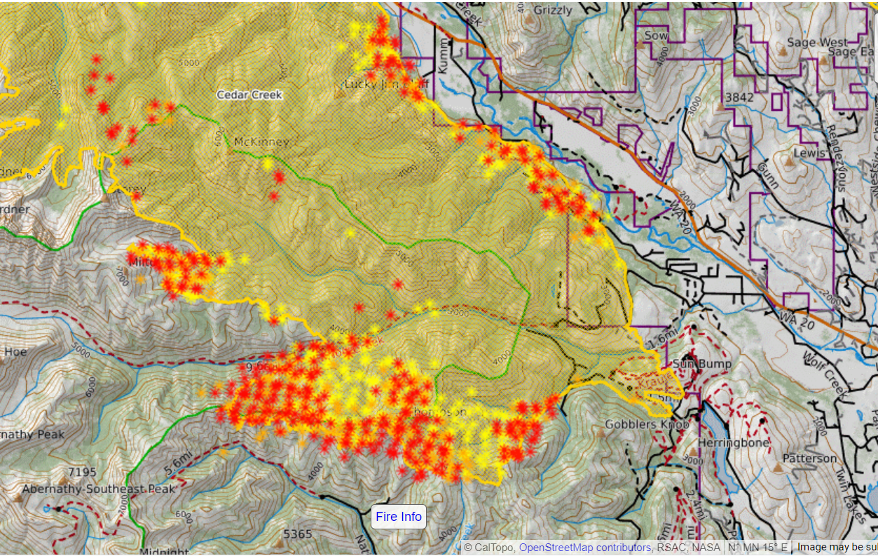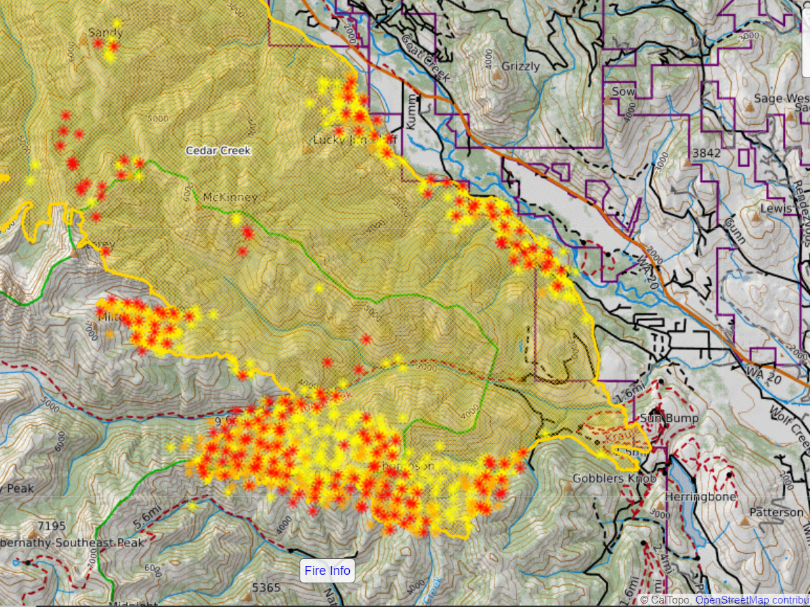 Cedar Creek Fire 07/30 morning perimeter... Lots of growth from yesterday afternoon slopping over Thompson Ridge...