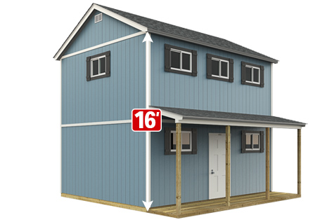 Tuff Shed, a builder who partners with Home Depot, offers sheds that make it easy, such as the two-story Sundance TR-1600 model (though it’s currently unavailable). It has standard 8-foot walls on the first floor, a full second floor, 36-inch stairs, an entry door with locks and boxed eaves on all walls. Customers can also order an optional front porch with a deck, windows, shutters and window boxes to make it truly look like a real house.