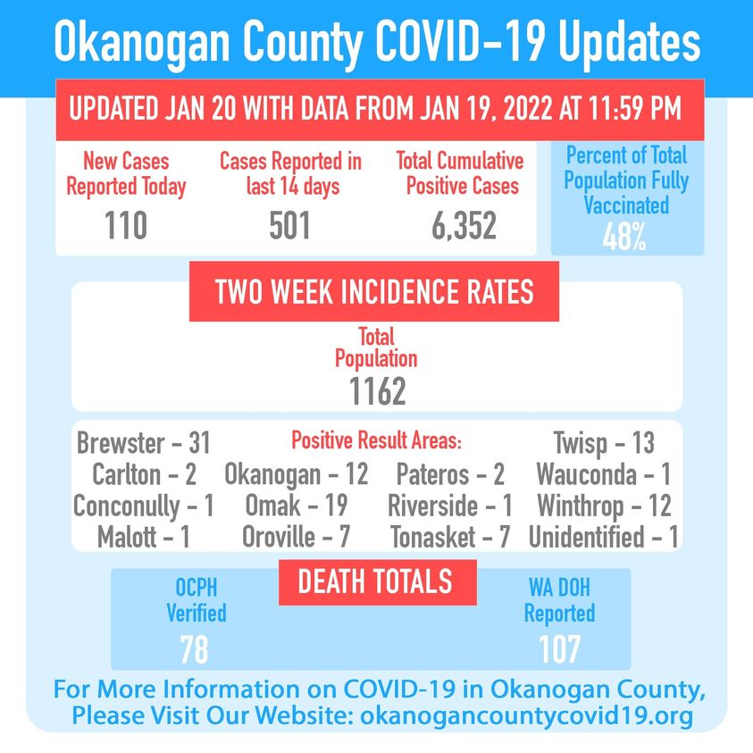 County has just published results for Jan 22/23 for a total of 209 cases, 21 of which are Carlton, Mazama, Twisp & Winthrop.