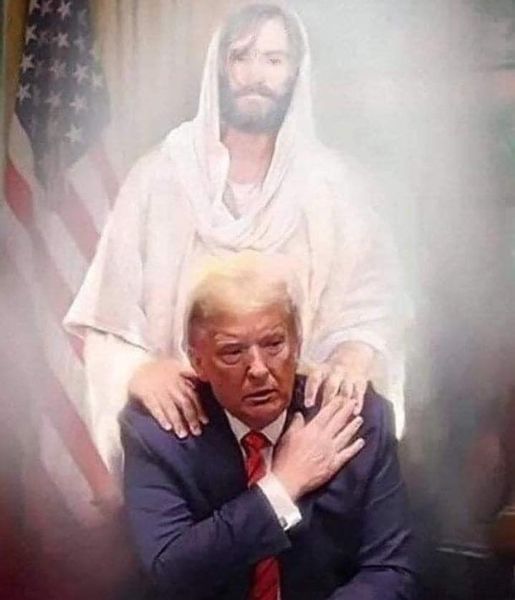 Apparently, some evangelical and trumper-ites have been circulating a picture of tubby being ‘guided’ by the holy hand.