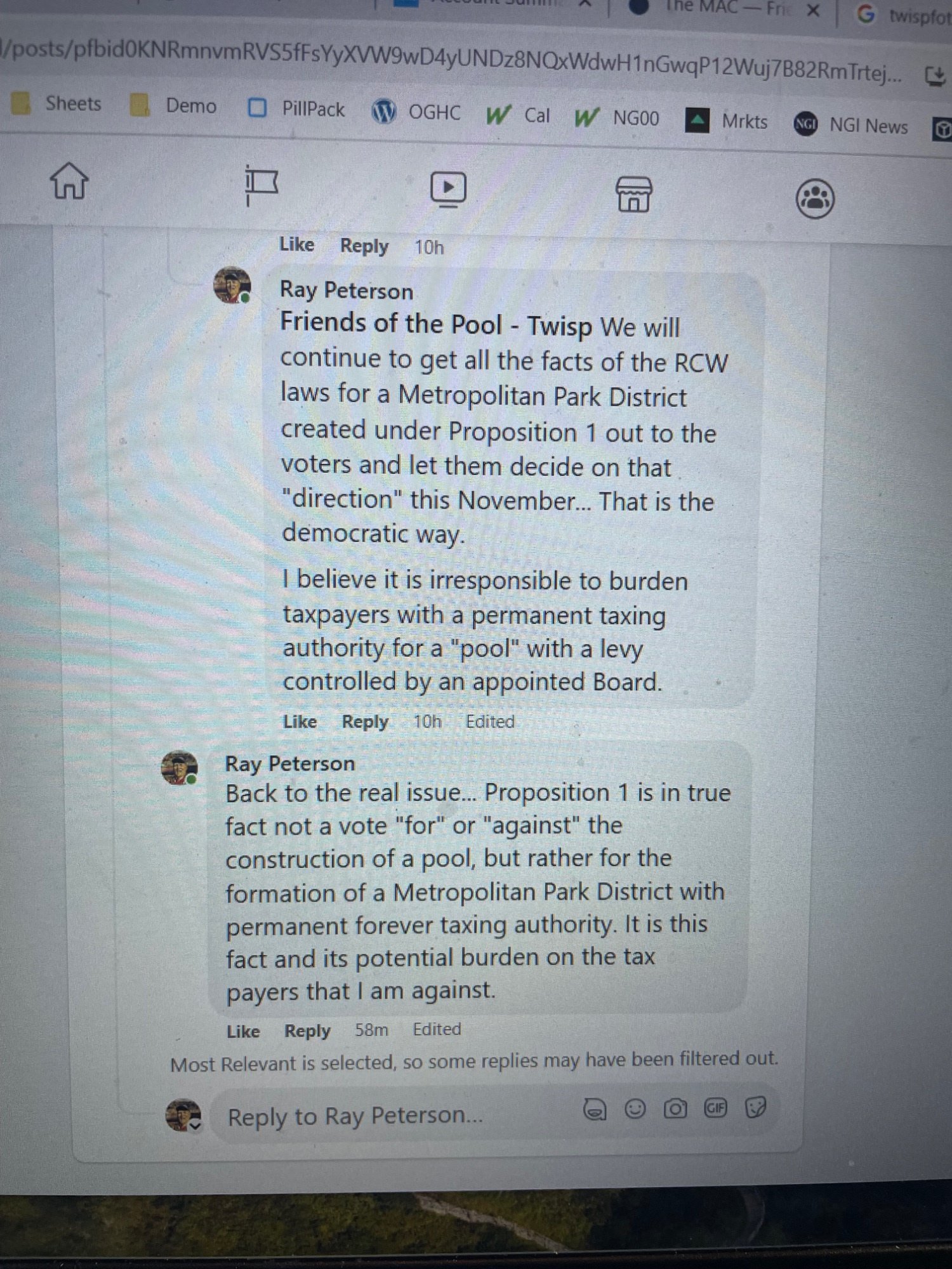 Your last comment stating that prop 1 is about approving the formation of a MPD and not about a for or against vote on constructing a pool, is an excellent point.