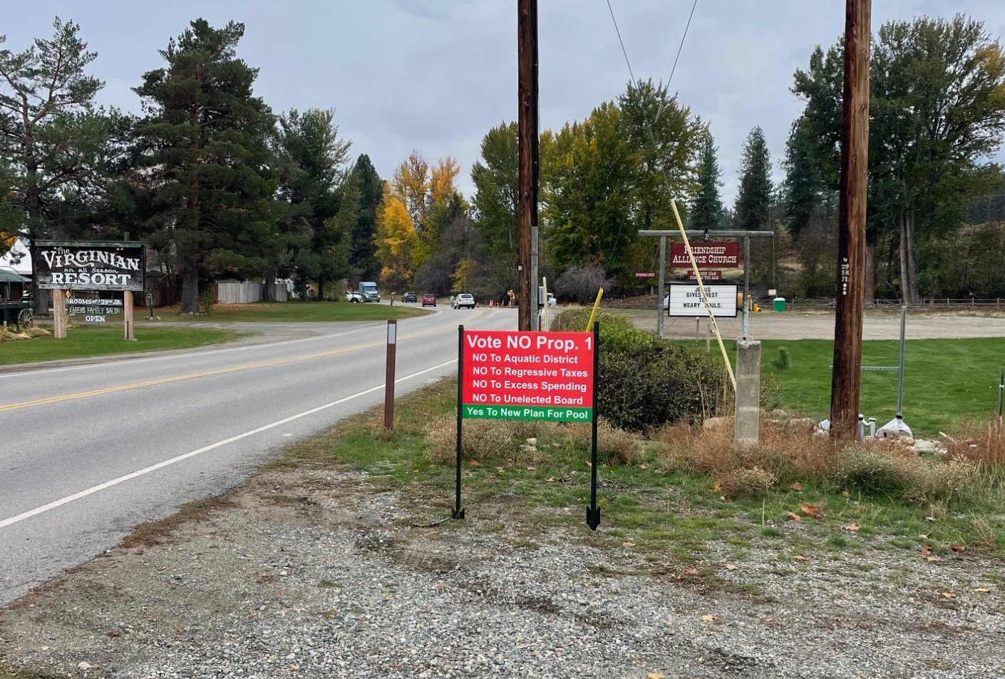 Let's find some great locations for these as a final push to defeat Proposition 1. Folks don't really have to pay for them, but any donation would be gladly accepted. They will be available at Coaches Lounge/Kim Frey's Accounting Office in Twisp during normal business hours. They should be mounted on t-posts or something similar. I use bailing wire to fasten to t-posts.