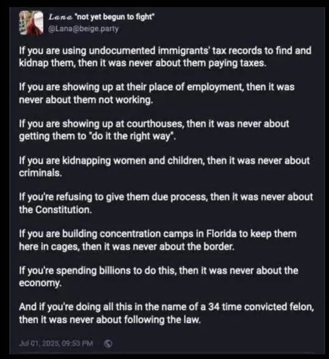Yep and I don't think foreigners who are criminals should be let free to go roam about our country. But due process has to happen. Innocents are taken away. And I don't approve of ICE agents or whoever they are wearing masks. Cowards.