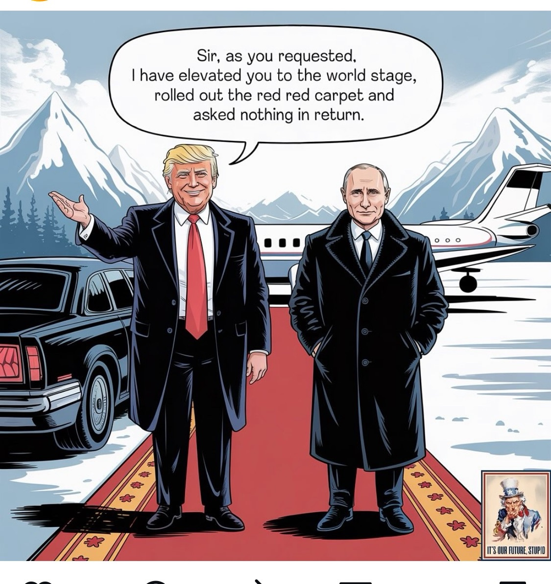 This may be the defining shot of the Russian mtg as Putin is forced to ride with stinky Trump in his limo