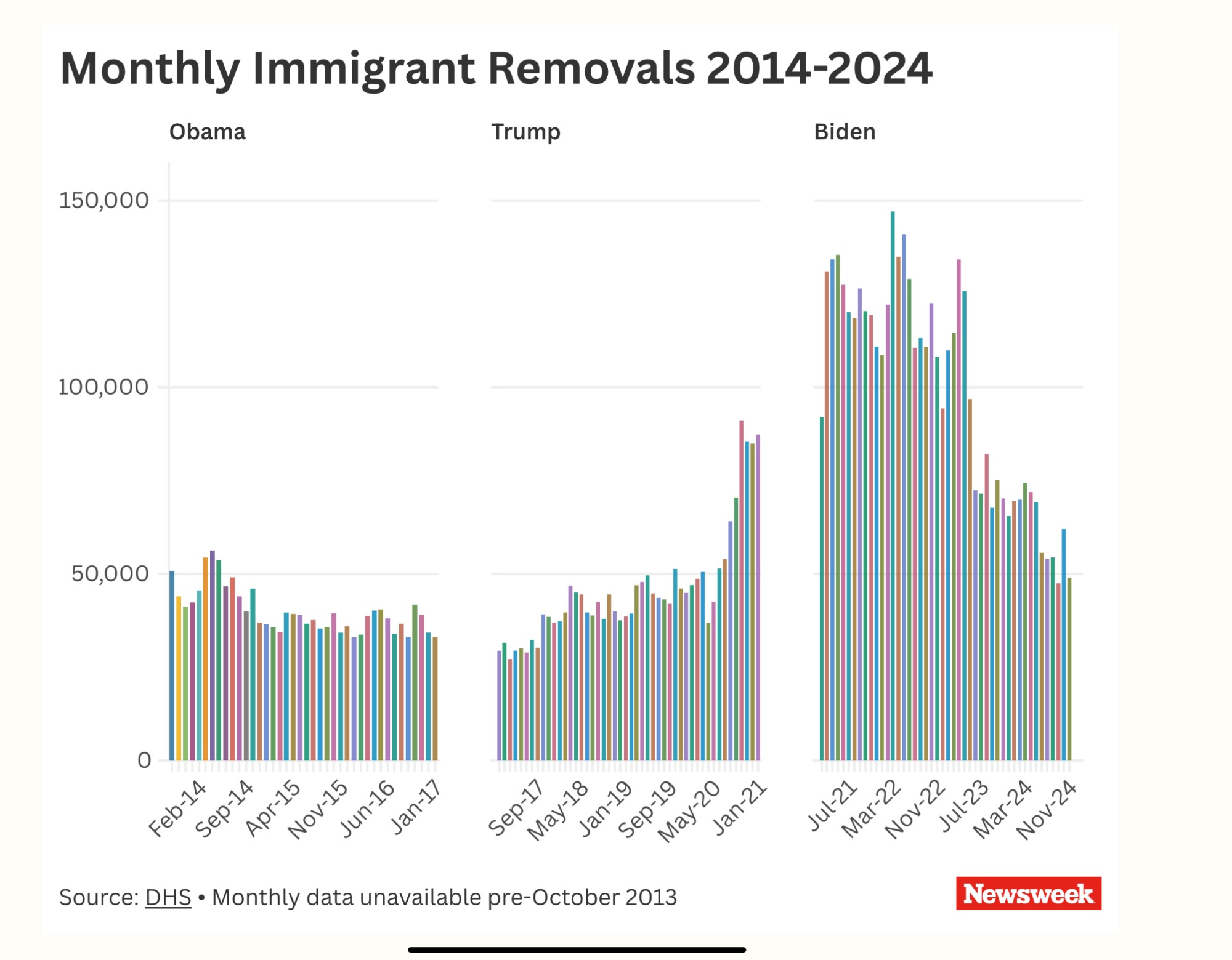 To be fair, Biden's deportation numbers were higher because it counted a lot of people being turned away at the US-Mexico border. And now most people are afraid to go there so those numbers are a lot lower.