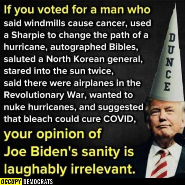 Yes, re-using a ridiculous meme while ignoring the current senile POTUS is very intelligent!