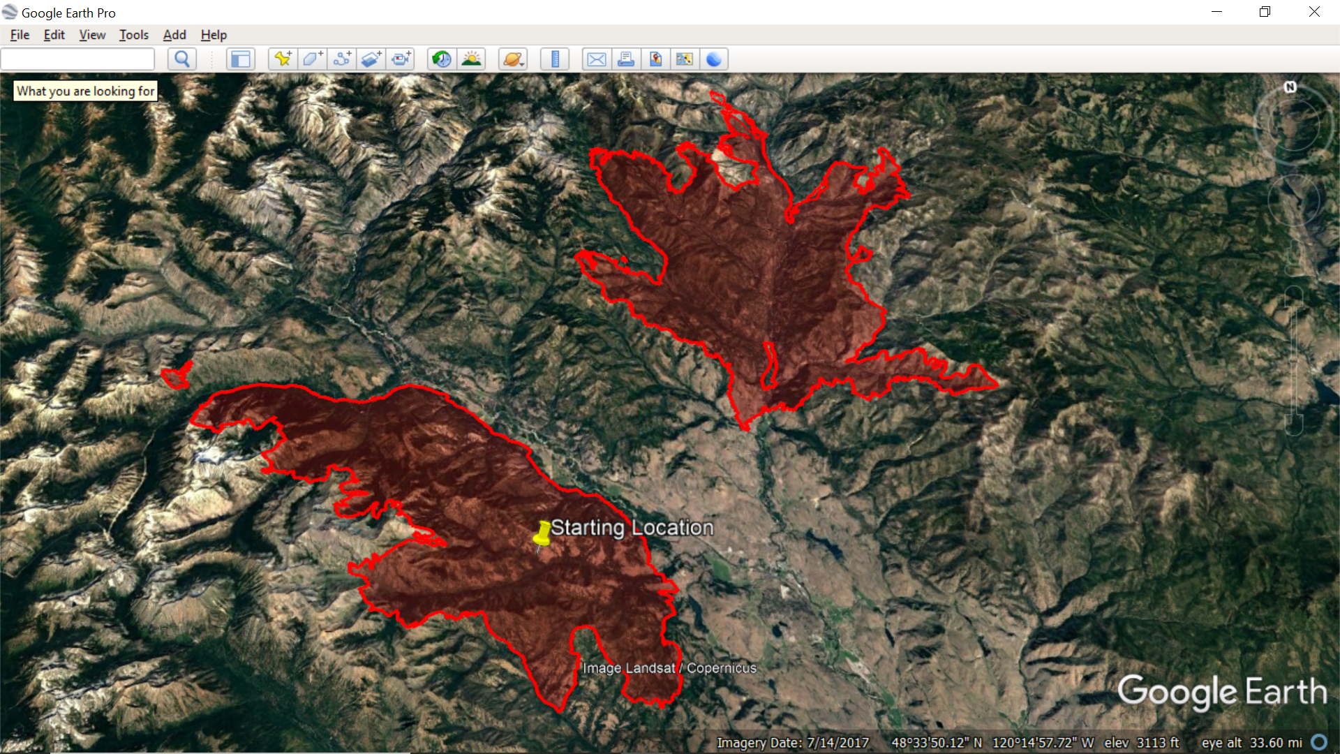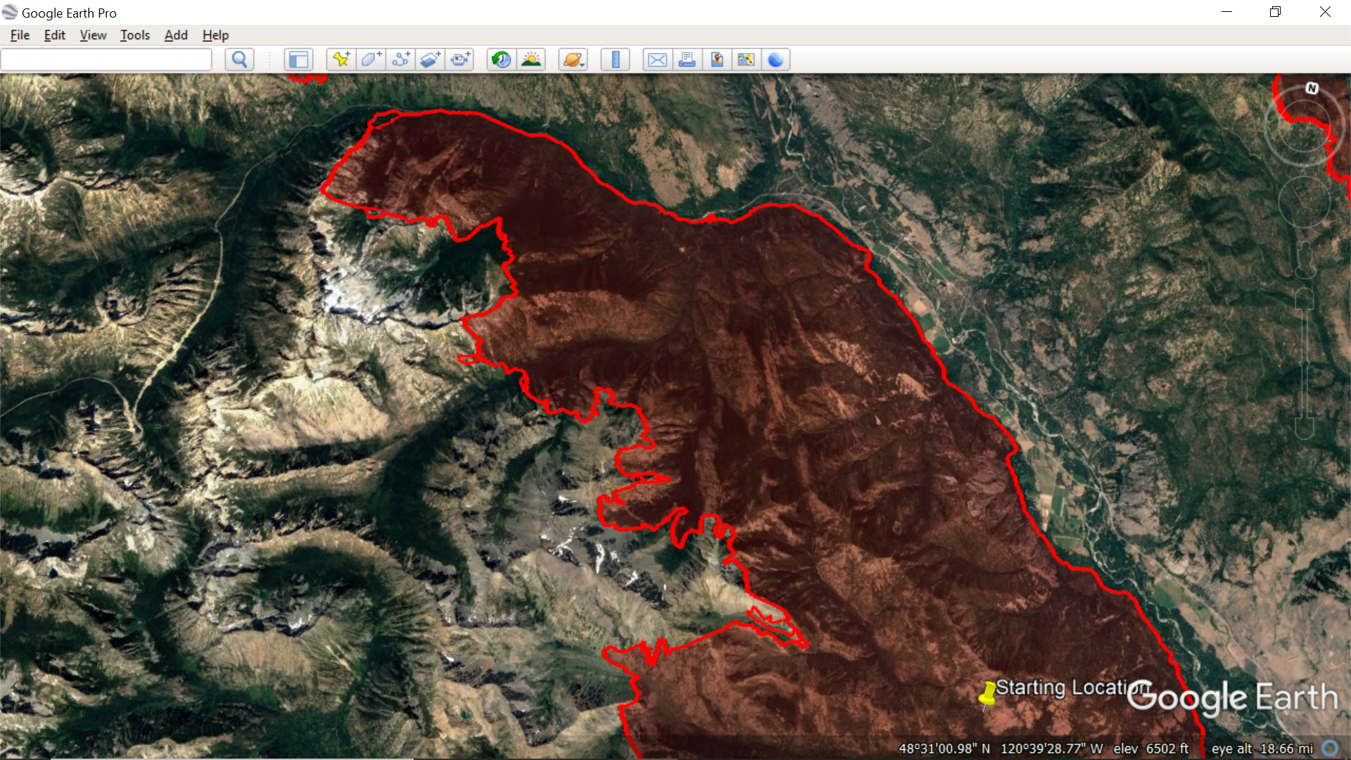 All current wildfires (larger filesize - 12.8 mb)... Previous perimeter files were selected for Methow Valley and small filesize